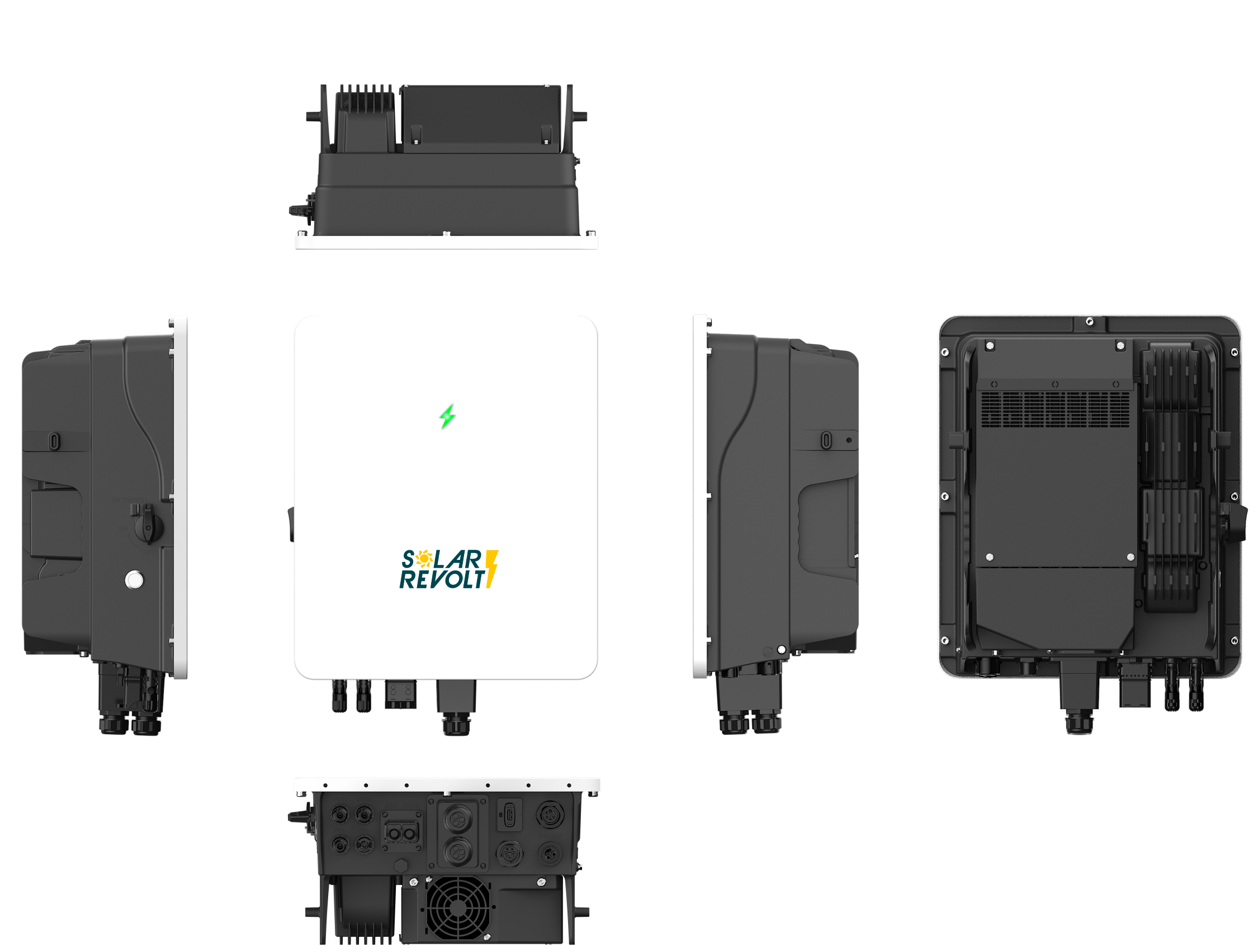 Il priorise automatiquement solaire, batterie et réseau, assure un secours < 10 ms pour vos circuits essentiels et se pilote à distance via l’appli Solar Revolt Vue.
